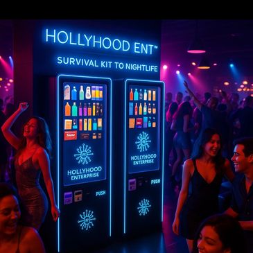 Hollyhood Enterprise™ is a nightlife-focused vending company providing essentials to clubs, hotels, barbershops, and more. We customize vending machines to match your venue and create passive income through revenue sharing.