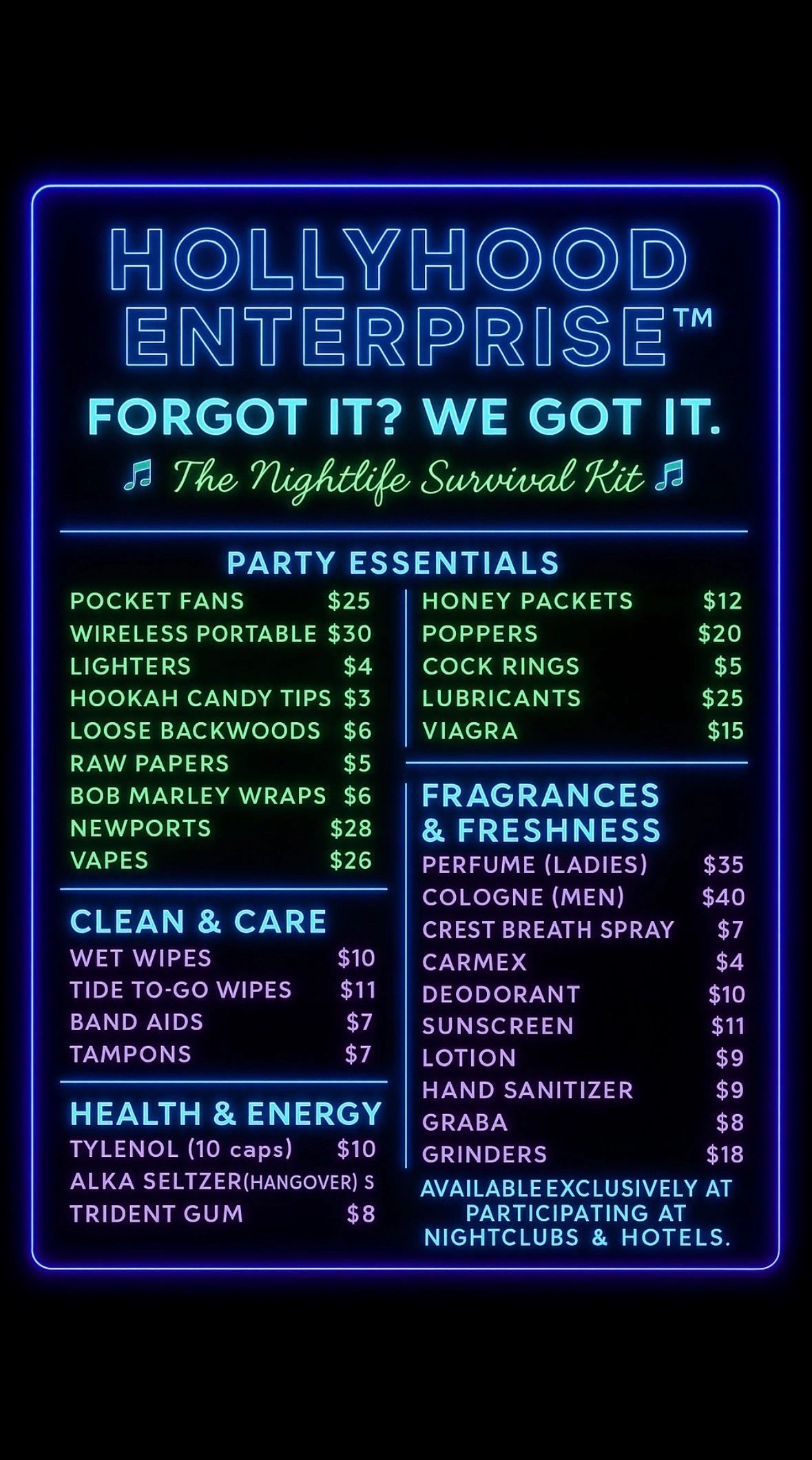 Hollyhood Enterprise™ is the ultimate survival kit for nightlife — built for properties that thrive after dark. From nightclubs to hotels, we deliver real value to your guests and real income to your venue.
